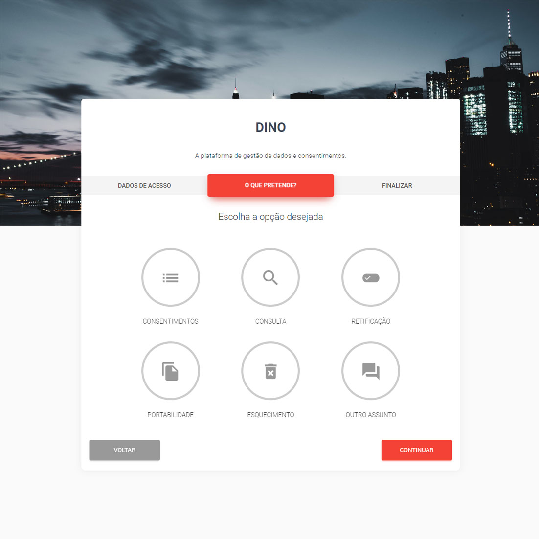 1. Sobre a Plataforma DINOA DINO é uma plataforma para apoiar empresas na sua missão de transparência e licitude no tratamento de dados pessoais. Estabelece uma ponte entre um responsável por tratamento de dados pessoais (EMPRESA CLIENTE da INOVE ONLINE) e os TITULARES desses mesmos dados. Tem como funcionalidades principais: